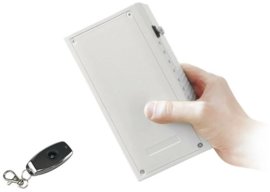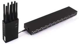 компактная модель с 8-ю излучателями ультразвуковой помехи; работает бесшумно, блокирует микрофоны на расстоянии до 7 м; имеет собственный аккумулятор, время автономной работы — 2 часа; в комплекте с прибором поставляется небольшой проводной пульт ДУ; для маскировки можно использовать сумку-клатч (идет в комплекте).